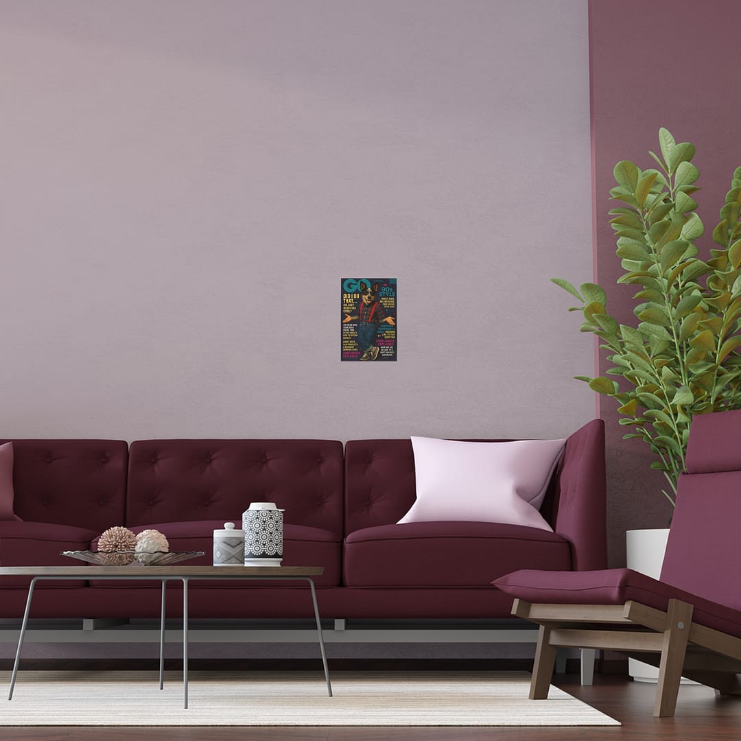 90s Style Silk Poster – Retro Dog Art for Home & Office Decor