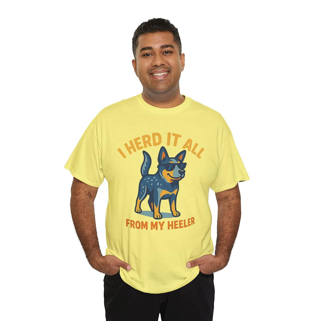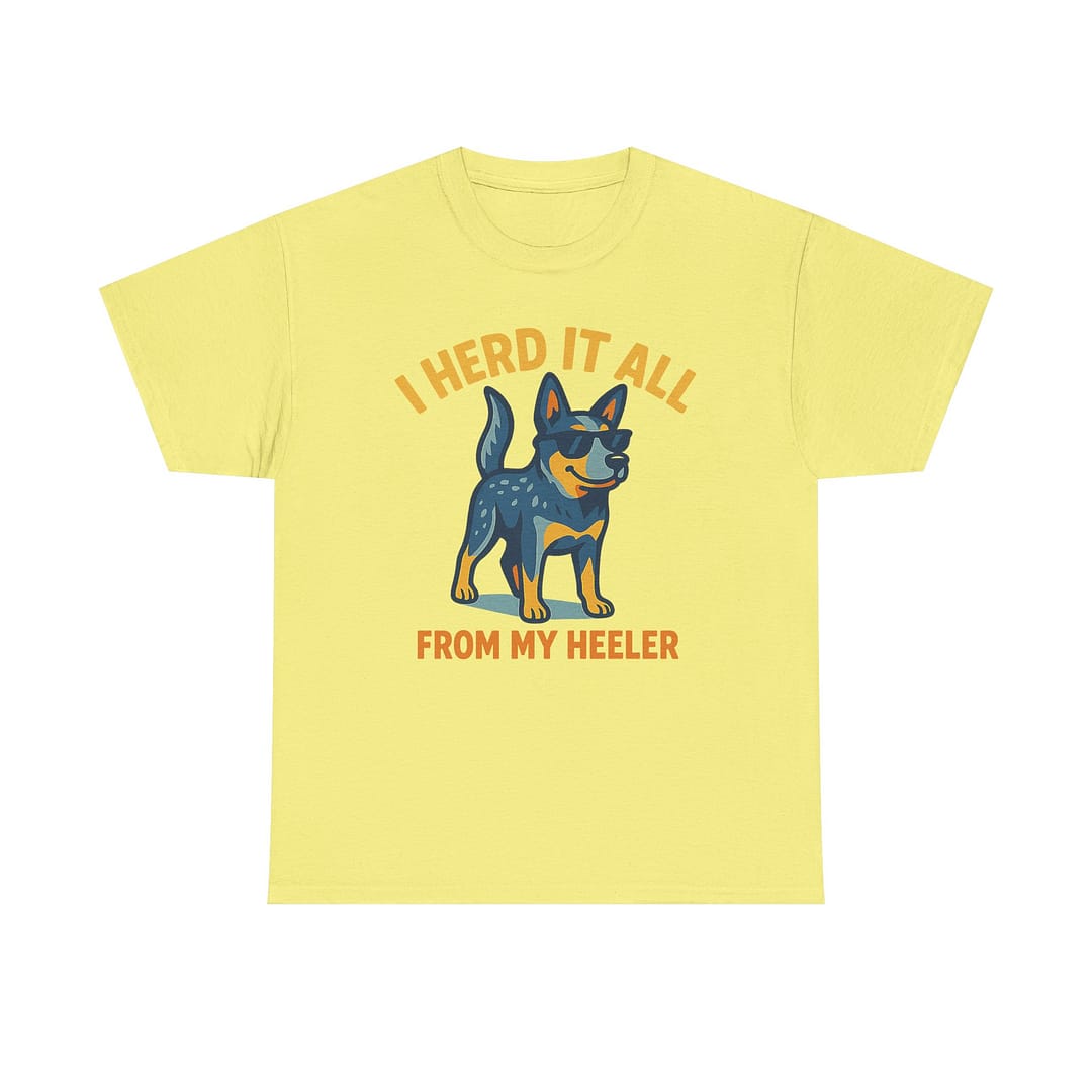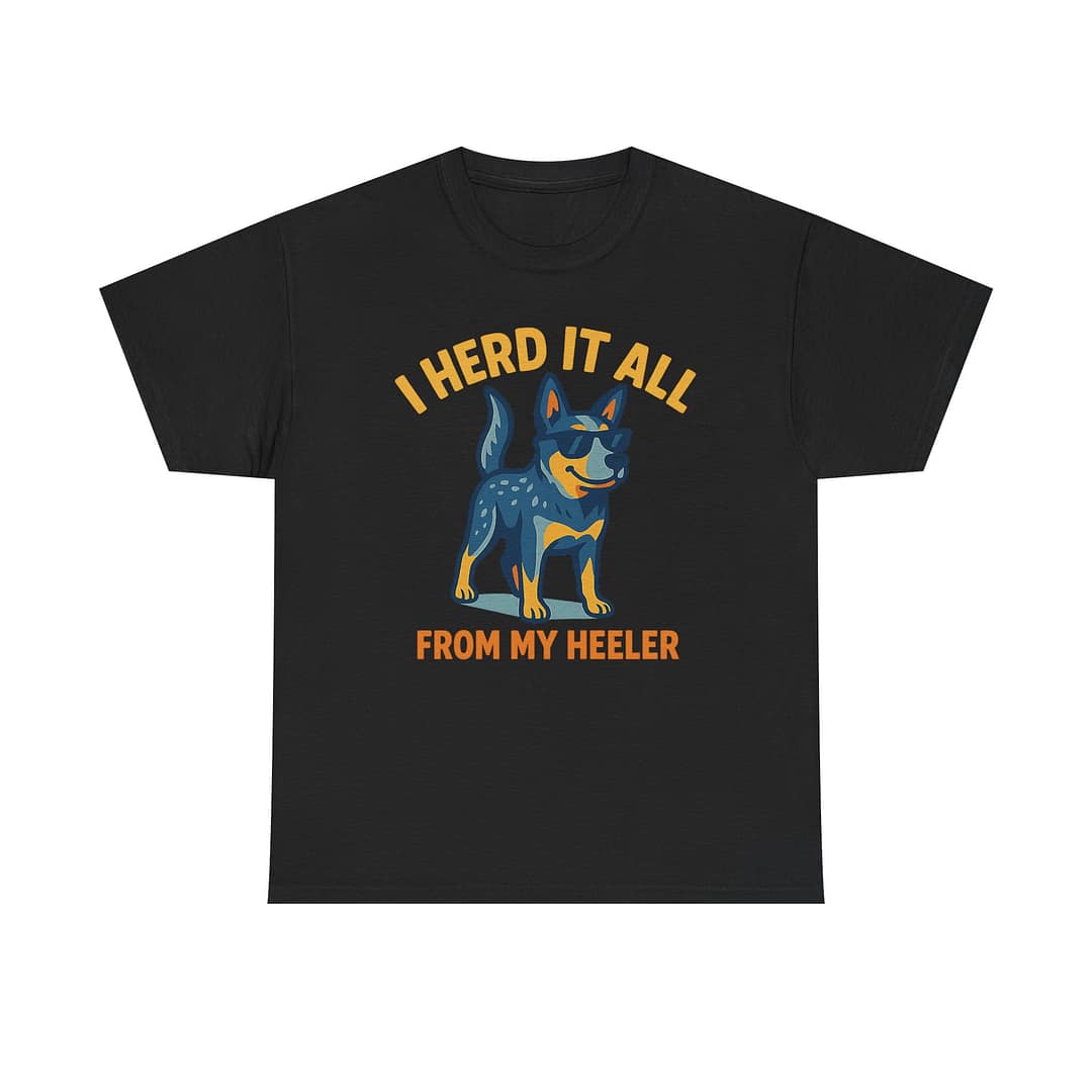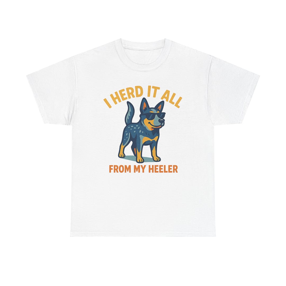 Funny Dog Lover Tee – “I Herd It All From My Heeler” Unisex Heavy Cotton T-Shirt