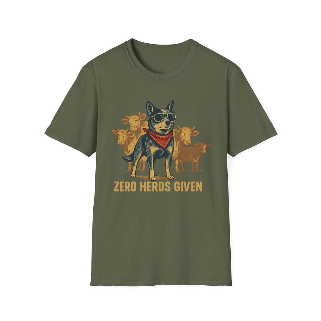 Introducing a fun and quirky Zero Herds Given Graphic unisex t-shirt perfect for animal lovers and anyone with a great sense of humor. Featuring a playful design with a cool dog surrounded by cows, this tee brings a light-hearted vibe to any wardrobe. Crafted from soft, lightweight cotton, it keeps you comfortable whether you’re out exploring, lounging at home, or at a casual gathering with friends. Ideal for wearing during summer festivals, casual get-togethers, or just as a fun everyday look. This t-shirt makes a fantastic gift for friends and family who appreciate witty graphics and a relaxed style. It’s also a delightful choice for homecoming events or special celebrations where you want to stand out with personality.